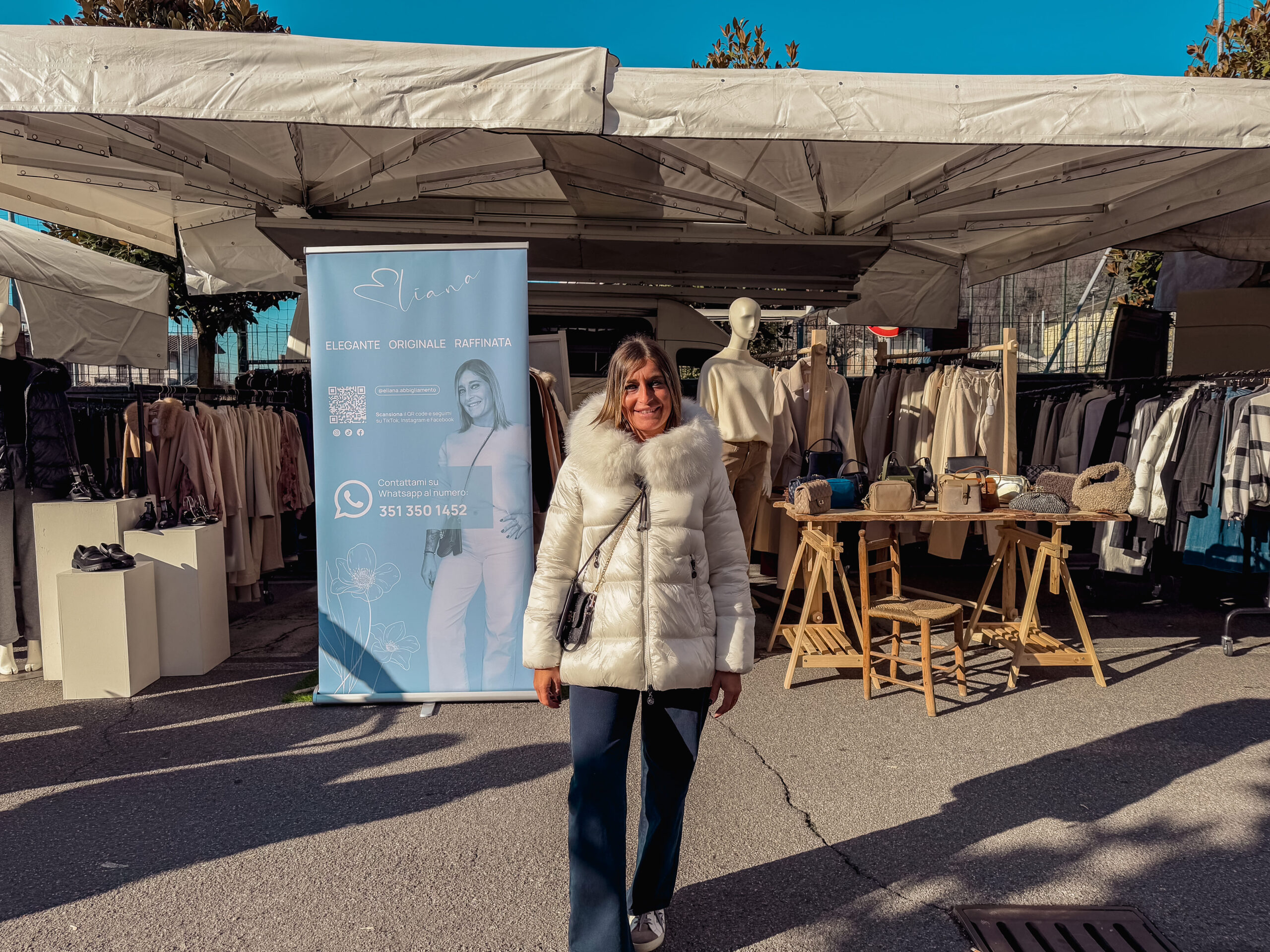 Eliana ha iniziato la sua avventura nel mondo della moda nel 1995, spinta dalla passione per l’abbigliamento classico e senza tempo. Con un occhio attento alla qualità e all’eleganza, ha scelto di dedicarsi esclusivamente alla moda femminile, selezionando personalmente ogni capo nei mercati. Oggi, porta il suo stile in diverse località, tra cui Coccaglio, Grumello, Bagnatica, Osio Sotto, Ospitaletto, Gardone Val Trompia e Grumello del Monte, offrendo alle donne collezioni versatili e raffinate che durano nel tempo.