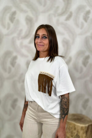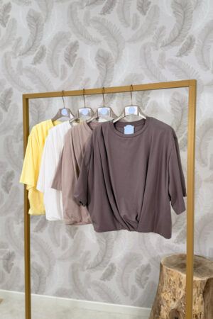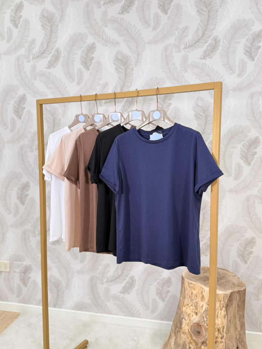 Il modello presenta girocollo classico e maniche corte con risvolto, dettaglio che dona un tocco moderno e curato anche agli outfit più semplici. La linea leggermente morbida la rende perfetta da indossare sia dentro che fuori dai pantaloni.